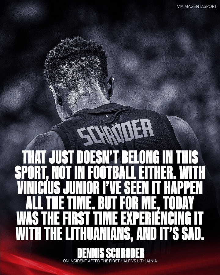 8月30日,男篮欧锦赛德国队以107比88战胜立陶宛。赛后,德国队球员施罗德透露,他在中场休息期间遭遇主场球迷的种族歧视行为。